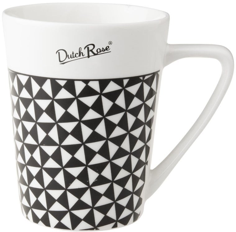 Met deze beker &ndash met een print van een grafische driehoek &ndash creëer je je eigen feestje. Afkomstig uit de Dutch Rose-collectie en geïnspireerd door de mooie wereld om ons heen. De beker heeft een diameter van 8 cm, een inhoud van 31 cl, is gemaakt van porselein en kan in de magnetron en vaatwasser.