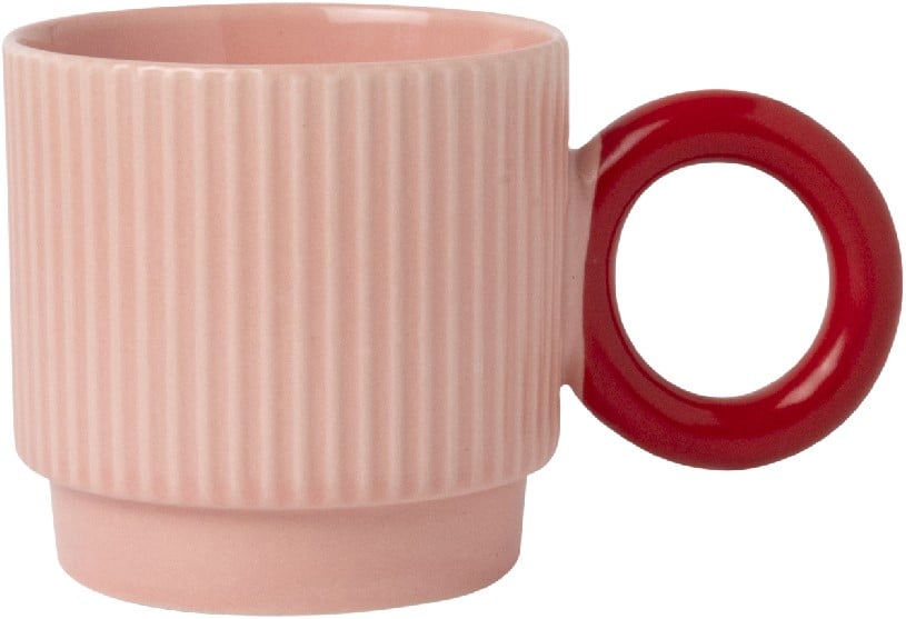 Geef je dagelijkse routine een vrolijke twist met de roze Luka mok van Table of Joy. Deze porseleinen mok heeft een speelse roze kleur en een opvallend rood oor. Geniet van je koffie, cappuccino of thee in stijl, en dankzij het stapelbare ontwerp past hij gemakkelijk in je kast. Een vrolijke toevoeging aan elke dag!