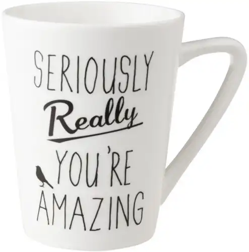 Waking up with a positive boost: & lsquoseriously, really, you & rsquorous amazing & rsquo. RISE AND SHINE EM>! Forget the coffee, so your day only starts & era nut good. The beautiful black and white cup from the Dutch Rose collection can be mixed very well and match your favorite items. This is how you make your own party! P> Dutch Rose is Iumlnspired on the beauty of our world and has the best gift service for every occasion. Nice to get, but even more fun to give. The cup has a diameter of 8 cm, a capacity of 31 cl, is made of porcelain and is microwave and dishwasher safe. P>