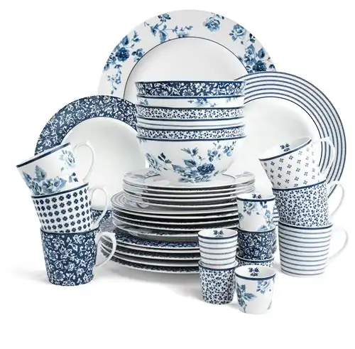 Get your family or friends over the floor and don't just want to make a delicious dinner, but it also serve nicely? Then this 36-piece dinnerware set for 6 people has everything you need. This Blueprint collectables dinnerware set has a luxurious and timeless appearance through the blue-white designs. The set consists of: p>