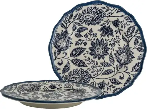 Infuse your table moments with a blend of classic elegance and contemporary charm with the Laura Ashley Hedingham scalloped breakfast plate in blue. This exquisite piece features the Hedingham print, inspired by traditional block printing, seamlessly merging Laura Ashley's timeless aesthetic with modern sophistication. Crafted from premium earthenware, the plate boasts a graceful scalloped edge and a hand-painted blue border, offering a unique and refined touch. Ideal for both everyday meals and special occasions.